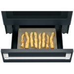 El horno ofrece limpieza automática con vapor y modos de horneado variados. Además, la sonda de temperatura asegura que los alimentos se cocinen correctamente. De igual manera, el interior negro brillante y las rejillas resistentes permiten un uso cómodo. Finalmente, la conexión WiFi y la programación de temperatura hacen que cocinar sea más sencillo y seguro para toda la familia.