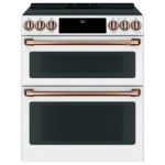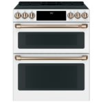 Finalmente, esta cocina ofrece un diseño elegante y resistente, con un acabado blanco mate y detalles en bronce cepillado. También incluye funciones útiles como autolimpieza, bloqueo de controles y varios modos de cocción. En resumen, combina estilo, tecnología y practicidad para mejorar tu experiencia al cocinar.