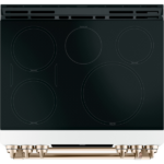 La cocina Café eléctrica de 30″ CHS950P4MW2 ofrece una forma muy cómoda de preparar tus comidas diarias. Para empezar, incluye un potente elemento de inducción de 28 cm que calienta rápido y mantiene una temperatura estable, lo que resulta ideal para hervir, derretir o cocinar a fuego lento. Además, su superficie de vidrio cerámico facilita la limpieza y mantiene un aspecto moderno en tu cocina.