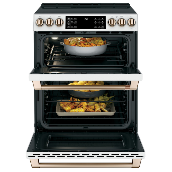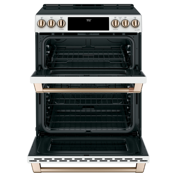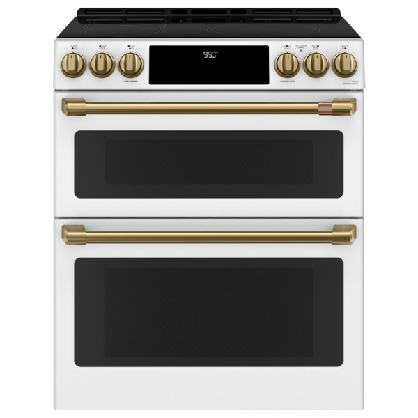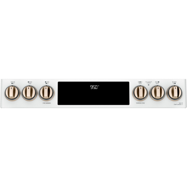 Finalmente, esta cocina ofrece un diseño elegante y resistente, con un acabado blanco mate y detalles en bronce cepillado. También incluye funciones útiles como autolimpieza, bloqueo de controles y varios modos de cocción. En resumen, combina estilo, tecnología y practicidad para mejorar tu experiencia al cocinar.