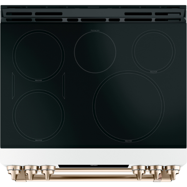 La cocina Café eléctrica de 30″ CHS950P4MW2 ofrece una forma muy cómoda de preparar tus comidas diarias. Para empezar, incluye un potente elemento de inducción de 28 cm que calienta rápido y mantiene una temperatura estable, lo que resulta ideal para hervir, derretir o cocinar a fuego lento. Además, su superficie de vidrio cerámico facilita la limpieza y mantiene un aspecto moderno en tu cocina.