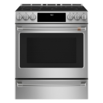 La Cocina de Inducción Café 30″ CHS90XP2MS1 es un electrodoméstico diseñado para combinar tecnología avanzada y elegancia en su cocina. En primer lugar, gracias a sus innovadores sensores de temperatura y a la cámara integrada en el horno, permite cocinar con precisión sin perder de vista el proceso. Además, forma parte de la Colección Profesional Personalizable CAFÉ™, que se inspira en cocinas profesionales, aportando un estilo moderno y sofisticado a cualquier espacio.