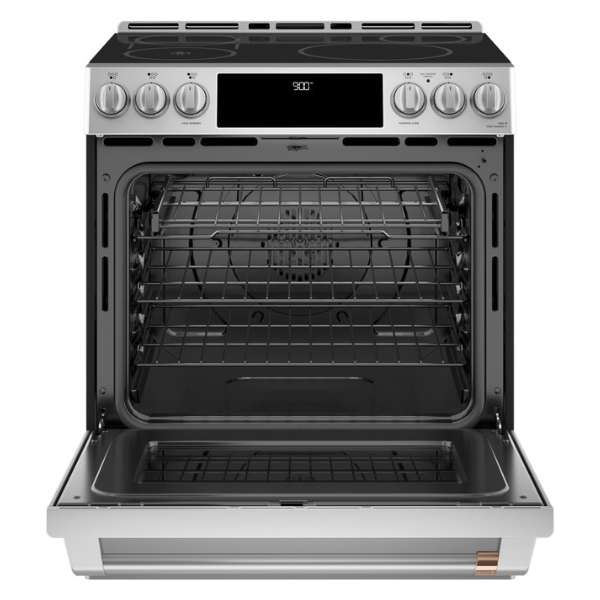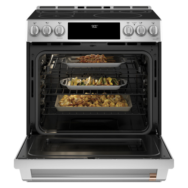 La Cocina de Inducción Café 30″ CHS90XP2MS1 es un electrodoméstico diseñado para combinar tecnología avanzada y elegancia en su cocina. En primer lugar, gracias a sus innovadores sensores de temperatura y a la cámara integrada en el horno, permite cocinar con precisión sin perder de vista el proceso. Además, forma parte de la Colección Profesional Personalizable CAFÉ™, que se inspira en cocinas profesionales, aportando un estilo moderno y sofisticado a cualquier espacio.