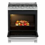 Finalmente, esta cocina cuenta con 6 quemadores, una amplia capacidad de 126.6 litros en el horno, una cubierta de acero inoxidable y una plancha integrada. Con su tecnología Ultimate, te ofrece un rendimiento óptimo desde la cocción hasta la limpieza.