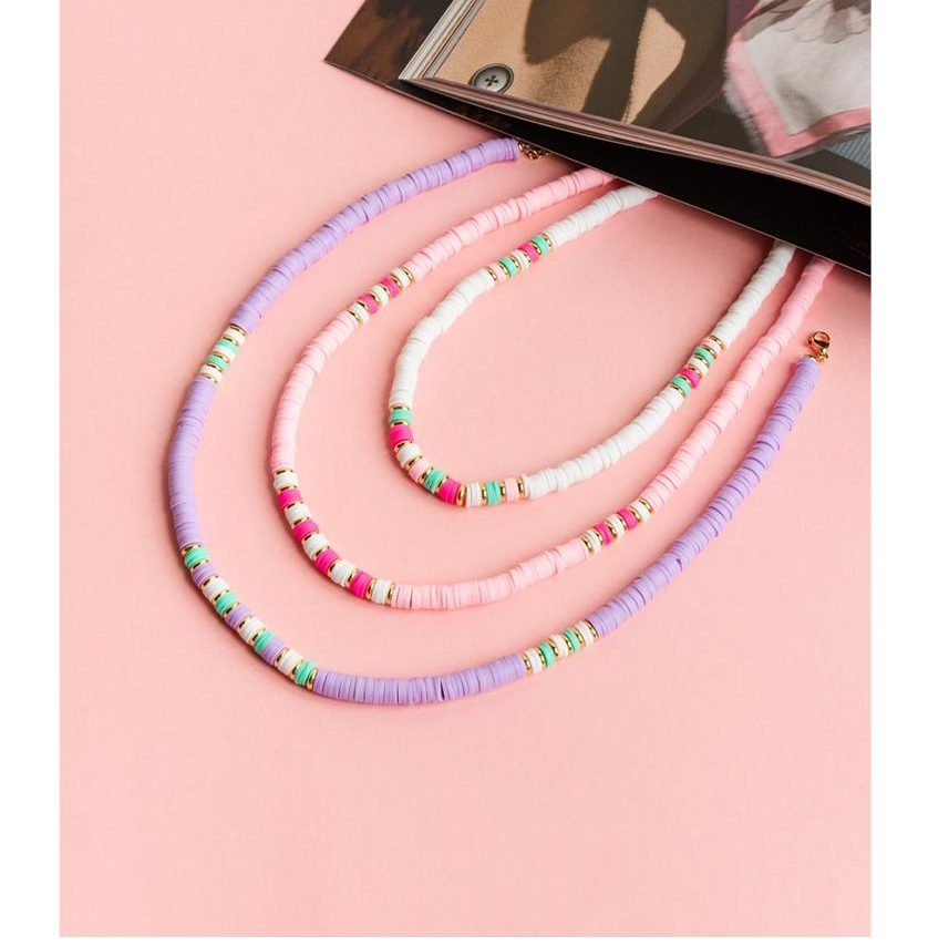 Las pequeñas conchas en tono lila fueron escogidas directamente de las costas oceánicas. Cada concha mantiene su forma y color originales. Entre ellas, se entrelazan delicadas perlas de río de color similar. Estos materiales naturales le otorgan una apariencia suave y romántica.