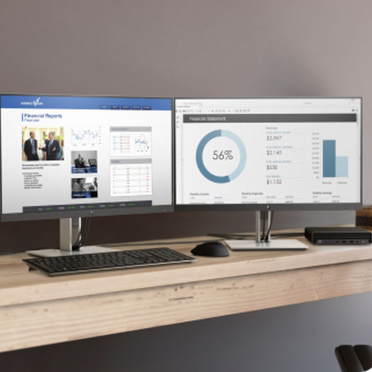 Con la HP Prodesk Mini, tenés completa libertad de elegir la pantalla que mejor funcione para vos, para visualizar múltiples ventanas y colaborar con facilidad. Es una PC de escritorio que economiza espacio en la oficina u hogar.
