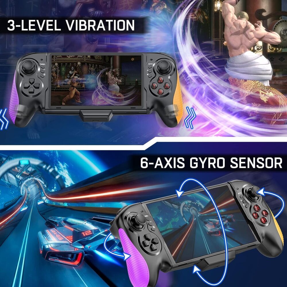 - Control de movimiento sensible, respuesta rápida sin demora, giroscopio de 6 ejes para detección de gravedad, adecuado para juegos de detección de movimiento de interruptores, como Zelda, Mario Kart 8 Deluxe, etc.