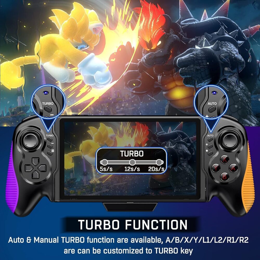Este controlador también ofrece la versatilidad de 3 velocidades Turbo y ataque automático, lo que te permite personalizar la experiencia en tus juegos de interruptor. Además, la doble vibración y el control de movimiento brindan una inmersión total en tus juegos, haciéndolos más realistas y emocionantes.