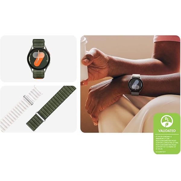 La correa Samsung para Watch 7 de 40mm ofrece comodidad y estilo con su tejido ligero y transpirable. Fabricada con materiales reciclados certificados, es una opción sostenible y perfecta para el día a día. Su diseño facilita un ajuste seguro y cómodo, ideal tanto para el descanso como para el entrenamiento.