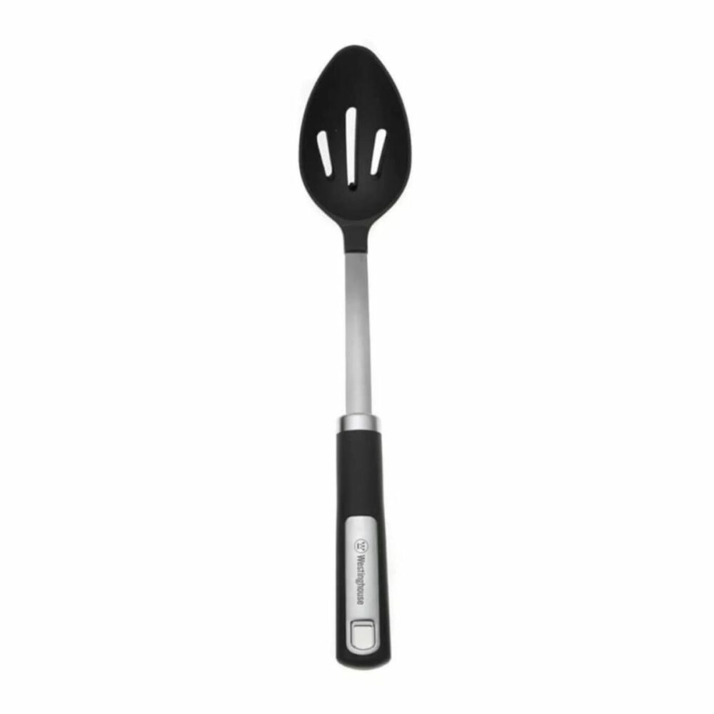 Cuchara Ranurada Westinghouse ideal para el arroz, con brazo de acero, hecha de nailon y mango ergonómico suave, antideslizante. Soporta temperaturas de hasta 410°F (210°C).