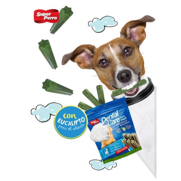 Super Perro Dental Care está formulado con ingredientes de alta calidad que ayudan a reducir la acumulación de placa y el mal aliento. Su textura especial ayuda a eliminar el sarro y masajear las encías de tu perro, promoviendo una salud bucal óptima. Además, este bocadillo está enriquecido con vitaminas y minerales esenciales para el bienestar general de tu mascota.