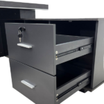 Por otra parte, este escritorio incluye 1 pasa cable que ayuda a mantener el área limpia y organizada. Además, cuenta con 2 gavetas, y una de ellas tiene llavín para mayor seguridad. De esta manera, puedes guardar documentos importantes con tranquilidad. También incorpora estantes laterales; por consiguiente, tendrás espacio adicional para carpetas o equipos.
