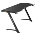 Escritorio gaming ThunderX3 ED5 HEX con iluminación RGB HEX, superficie ergonómica, estructura de acero resistente y accesorios para mantener tu espacio organizado y cómodo para largas sesiones de juego.