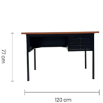En cuanto a los materiales, su estructura de metal y madera aglomerada laminada garantiza durabilidad y firmeza. Gracias a ello, se puede disfrutar de un escritorio resistente que mantiene su buen estado con el paso del tiempo. Del mismo modo, sus medidas de 120 cm de ancho, 60 cm de fondo y 77 cm de alto permiten aprovechar el espacio sin sacrificar comodidad.