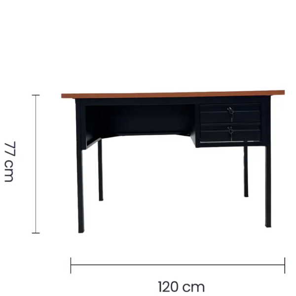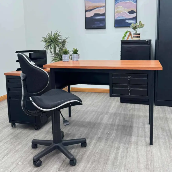 El escritorio Tokoa de 2 gavetas OM-9059 es una excelente opción para quienes buscan un mueble moderno, práctico y resistente. En primer lugar, su diseño en color negro combina fácilmente con cualquier estilo de decoración, desde oficinas elegantes hasta espacios de trabajo en casa. Además, gracias a su acabado en formica color haya y estructura metálica, este escritorio ofrece un aspecto limpio y profesional que sin duda realza cualquier ambiente.