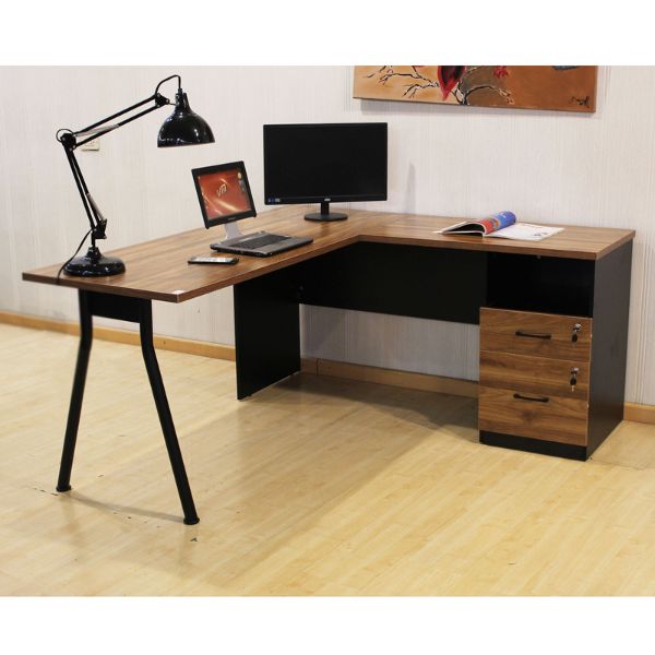 El Escritorio Tokoa Ejecutivo en forma de L Derecho, ofrece estilo y funcionalidad en uno. Con estructura de metal y material MDF con lámina de PDF, y dos gavetas integradas para almacenamiento organizado, es la elección perfecta para un espacio de trabajo eficiente y atractivo.