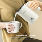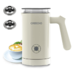 El espumador de leche 4 en 1 de GREECHO DS-M05 ofrece varias funciones, como espuma densa caliente, espuma aireada caliente, espuma fría y leche caliente. Gracias a sus múltiples modos, puedes elegir entre bebidas calientes o frías según tu preferencia. Además, con una capacidad de 5.1 oz para espumar y 10.2 oz para calentar leche, este espumador es ideal tanto para uso personal como familiar.