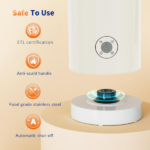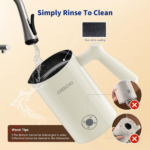 En primer lugar, este espumador es muy fácil de usar. Cuenta con un elemento calefactor de acero inoxidable que permite un calentamiento rápido y uniforme. En solo 2 minutos, la leche se calienta a aproximadamente 149 ℉. Además, el exterior del espumador se mantiene fresco, y el mango ergonómico antiquemaduras garantiza un uso seguro y sin esfuerzo.