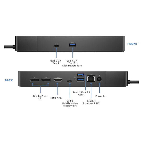 Con un diseño práctico y moderno, la WD19S ofrece múltiples puertos de conexión para adaptarse a cualquier necesidad tecnológica. Desde puertos USB Type-C y USB 3.2 hasta conexiones DisplayPort y HDMI, esta estación de carga garantiza una transferencia rápida de datos y video sin interrupciones. Además, la conexión de red Gigabit asegura una navegación estable y confiable para trabajar o jugar en línea.