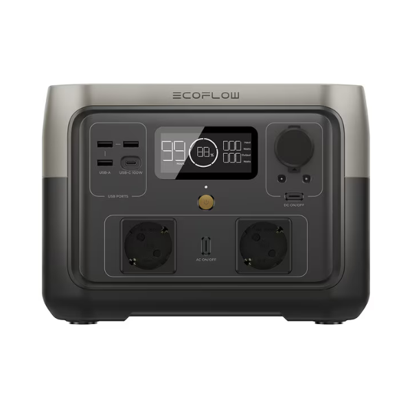 La River 2 Max ofrece múltiples opciones de salida. En primer lugar, incorpora dos puertos DC5521 de 12,6 V. Además, incluye un puerto de automóvil de 126 W máximo, ideales para cargar varios equipos al mismo tiempo. Por otro lado, cuenta con recarga mediante USB-C de 100 W, lo que brinda rapidez y eficiencia en el proceso. De esta manera, siempre tendrás energía lista en cuestión de horas.