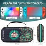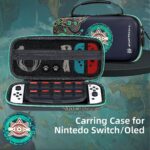- Protección multicapa: la funda para interruptor está hecha de material de nailon para resistir la compresión y la deformación. El forro suave detrás de las ranuras para tarjetas evita arañazos, y el diseño de ranura de cuatro esquinas garantiza un ajuste cómodo y una protección estable. Elegante funda rígida de piel sintética con tallado zelda coleccionable mantiene tu máquina anfitriona de Nintendo Switch segura.