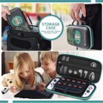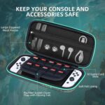 - Almacenamiento espacioso: con compartimentos independientes en ambos lados, nuestra funda ofrece un amplio espacio de almacenamiento para tu interruptor y accesorios nintendo. También tiene 10 ranuras integradas para tarjetas de juego para mantener tus tarjetas de juego organizadas y de fácil acceso.
