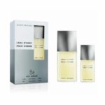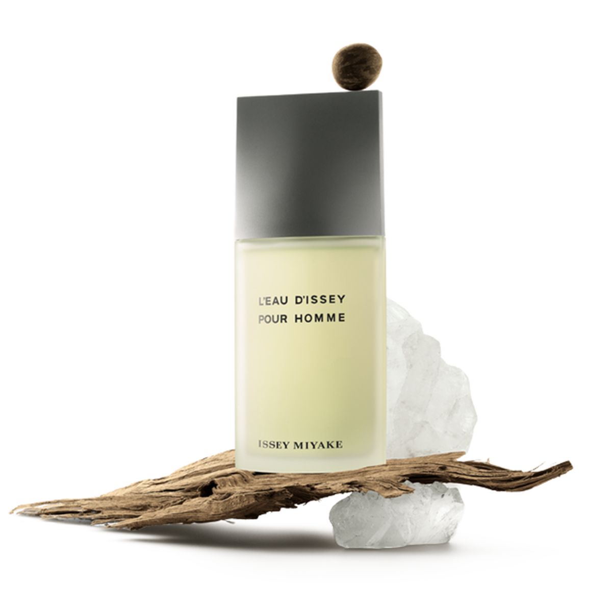 L´ Eau D´ Issey Pour Homme opta por un frescor acentuado con especias sobre un fondo amaderado. Fuente de energía inspirada en corrientes fuertes y cascadas. Con discreción, L’ Eau d’ Issey pour Homme se ha consolidado como una fragancia de referencia elegante y única en el mundo de la perfumería masculina. Una línea alargada, estable y reconocible: así es el icónico frasco de L’ Eau d’ Issey pour Homme. Muy actual, el rectángulo de cristal ensanchado en la base destaca con fuerza y estabilidad, y contrasta con el capuchón cónico de metal gris claro.