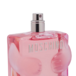 En primer lugar, el perfume destaca por su presentación única: una encantadora botella con forma del icónico oso Moschino, fabricada en vidrio transparente. En cuanto a su aroma, pertenece a la familia floral, afrutada y oriental. Desde el inicio, se perciben notas cítricas como limón y naranja de Italia, junto con cítricos confitados. Luego, se suman acordes dulces de chicle, canela, arándanos y rosa de Bulgaria, que aportan calidez y personalidad.