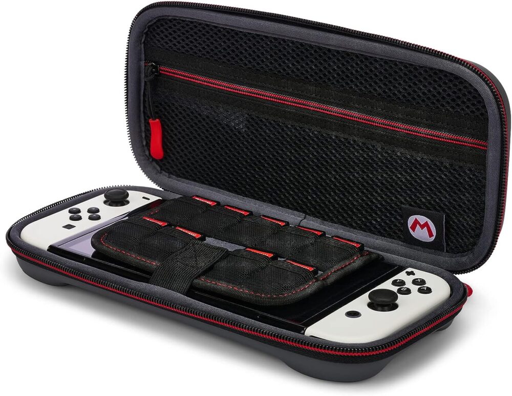 El estuche PowerA para Nintendo Switch y Nintendo Switch Lite es una opción ideal para proteger y transportar tu consola de videojuegos de manera segura y conveniente. Este estuche está diseñado pensando en la comodidad y la protección de tu dispositivo, lo que lo convierte en una elección perfecta para los amantes de los videojuegos.
