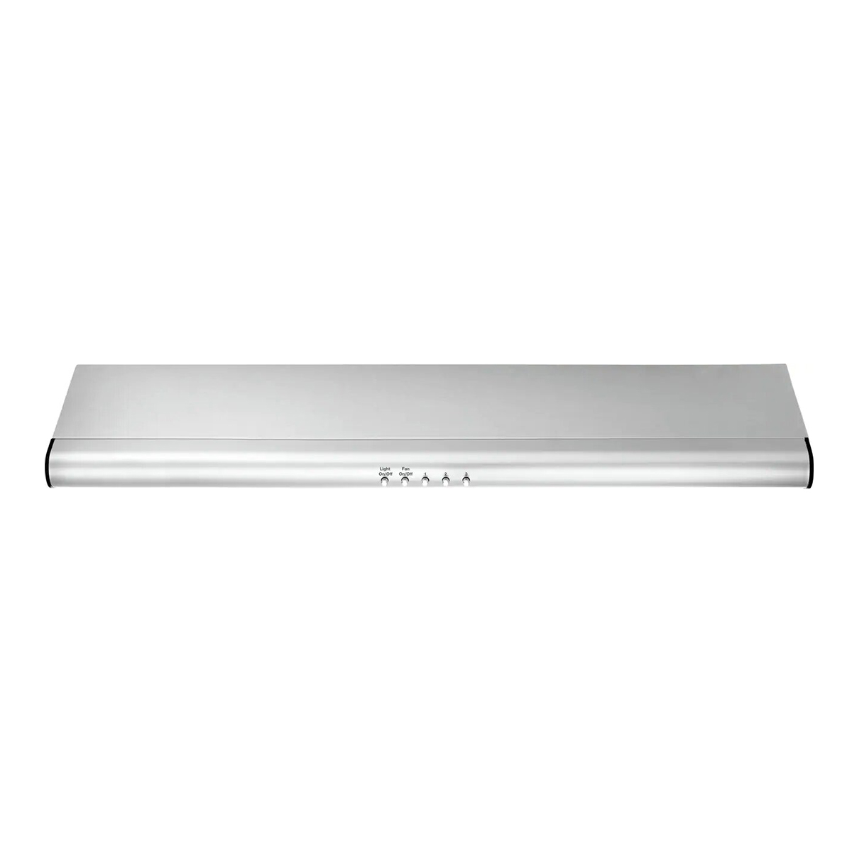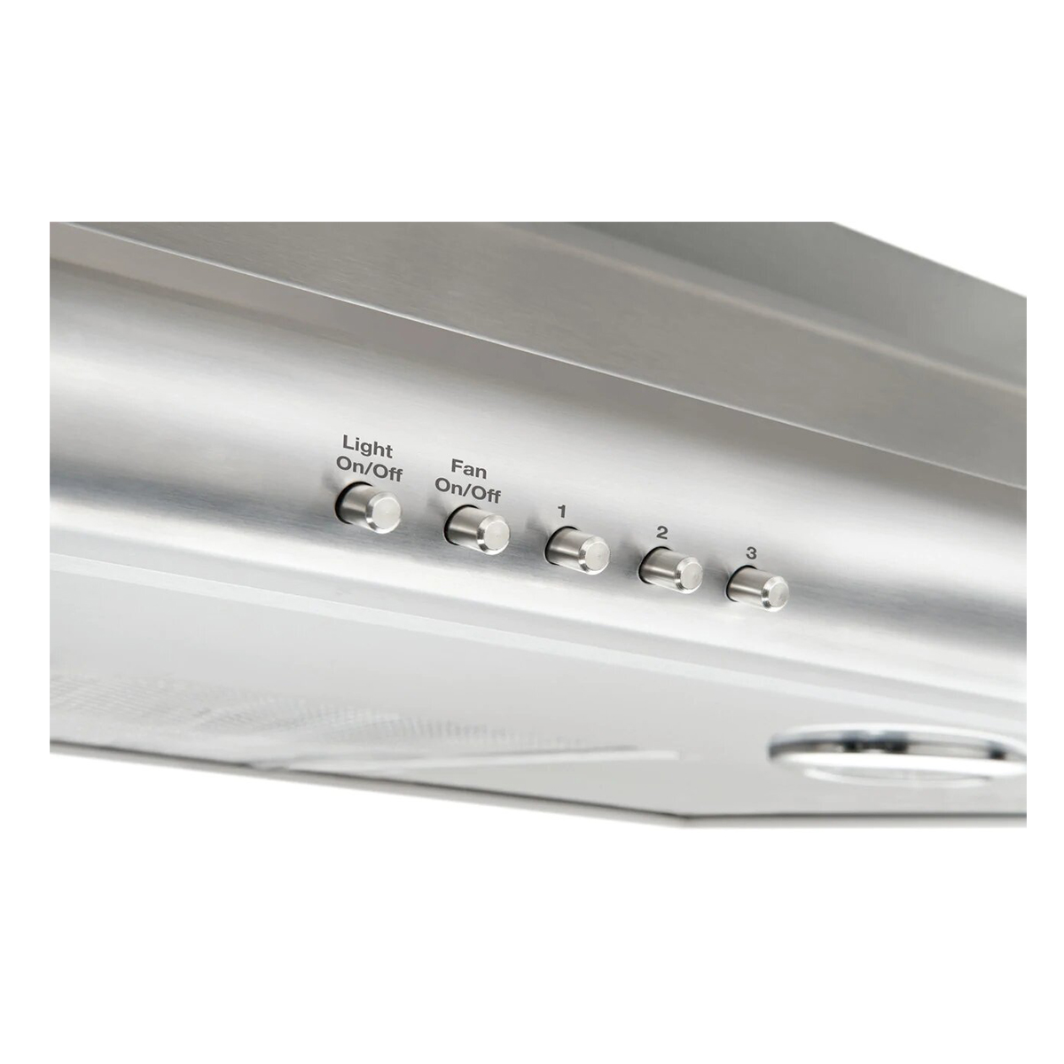 Incorpora el sistema de escape convertible lo cual permite seleccionar entre el escape externo y recirculación. Cuenta con 2 luces halógenas en la parte inferior que asegurarán la luz suficiente para cocinar en la estufa y se pueden controlar fácilmente mediante botónes electrónicos ubicados en la parte frontal.