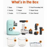 Con una inserción horizontal y una junta de unión, este extractor reduce el temblor y previene posibles problemas como fugas de jugo o electricidad. Su sinfín personalizado, sin cuchillas y con un pulido fino, exprime completamente los ingredientes, conservando su sabor, textura y nutrientes para una dieta equilibrada.