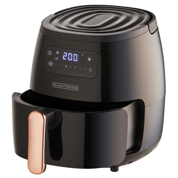 La freidora de aire Black+Decker digital HFD5055B es perfecta para preparar comidas rápidas y saludables. Además, gracias a su tecnología de flujo de aire caliente, puedes freír y hornear tus platillos favoritos con poco o nada de aceite, logrando un sabor crujiente y delicioso.