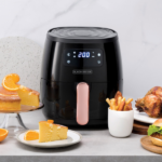 Asimismo, su panel digital táctil hace que usar la freidora sea muy fácil. Solo necesitas seleccionar la función que deseas y dejar que la freidora haga el resto. Además, incluye 7 funciones automáticas, ideales para cocinar papas fritas, pollo, pescado, costillas y hasta postres como brownies o pasteles. De este modo, ahorrarás tiempo y esfuerzo en la cocina sin sacrificar sabor ni calidad.