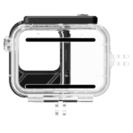 Además, incorpora una lente de cristal tratado que ofrece una transparencia excelente. De este modo, las imágenes se mantienen nítidas, con menos reflejos y colores más reales incluso bajo el agua. Por lo tanto, cada foto y vídeo conserva gran detalle, permitiéndote revivir cada momento con claridad y calidad profesional.
