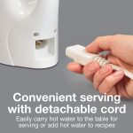 El cable se separa del hervidor para servir fácilmente, contás con ventanas dobles a través de las cuales, podés ver el nivel del agua desde cualquier lado del hervidor, el asa de extracción te facilita levantar la tapa para agregar agua; tenés una potencia de 1000 vatios para hervir un litro de agua.