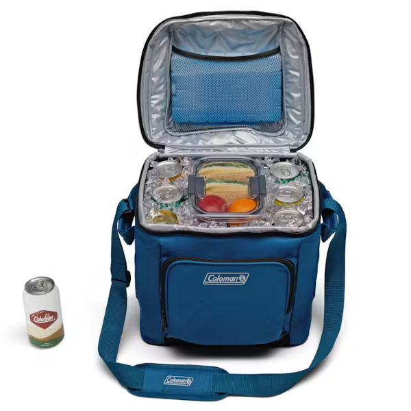 La hielera Coleman Chiller Suave para 30 latas es perfecta para llevar tus bebidas y alimentos a cualquier lugar. Además, gracias a su diseño portátil, cuenta con una correa de bandolera acolchada ajustable y asas laterales acolchadas que facilitan su transporte. También, incluye bolsillos frontales con cremallera y bolsillos internos de malla para guardar bolsas de hielo y otros accesorios que necesites, por lo que siempre tendrás todo organizado.