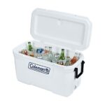 La hielera Coleman Serie 316 está hecha para soportar las desafiantes condiciones de estar en el agua, el recubrimiento UVGuard ayuda a proteger el enfriador de los dañinos rayos del sol. Brinda un levantamiento más fácil, gracias a las manijas laterales abatibles, luego te podés usar la tapa cerrada como asiento. Los portavasos integrados en la tapa mantendrán su bebida cerca y evitarán derrames. Las herraduras de la Hielera Coleman Serie 316 son de acero inoxidable que evitan la oxidación y la corrosión, lo que prolonga la vida útil del enfriador.