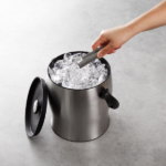 Asimismo, esta hielera incluye una tapa que se guarda cómodamente en la parte inferior, lo que ayuda a ahorrar espacio mientras se usa. También incorpora unas pinzas a juego para servir el hielo de forma limpia y sencilla, facilitando cada preparación. Debido a su tamaño de 28 cm de ancho, 25 cm de profundidad y 28 cm de alto, ofrece una capacidad amplia y eficiente.