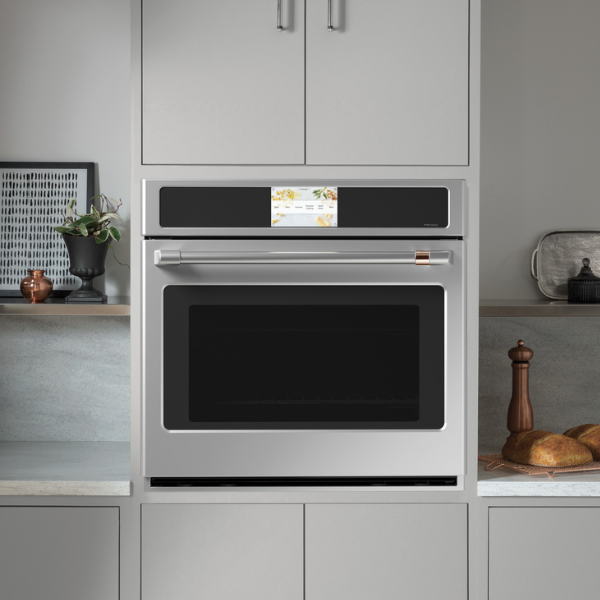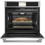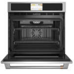 El Horno Café Professional Series de 30″ en color acero inoxidable cepillado es una opción moderna y práctica para cualquier cocina. En primer lugar, su diseño elegante, con ventana amplia en la puerta y bisagras de cierre suave, combina estilo y comodidad. Además, ofrece la posibilidad de personalizar el acabado del tirador con diferentes kits opcionales en tonos como negro, cobre o bronce. De esta manera, se adapta fácilmente a distintos estilos de decoración sin complicaciones.