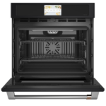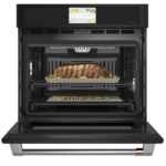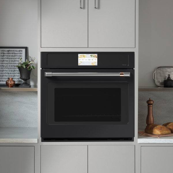 El Horno Café Professional modelo CTS90DP3ND1 Series 30″, combina diseño moderno y tecnología avanzada para la cocina del hogar. En primer lugar, su apariencia elegante en color negro mate con manija de acero inoxidable cepillado lo convierte en un electrodoméstico atractivo y fácil de integrar en diferentes estilos de cocina. Además, su puerta cuenta con una ventana amplia y bisagras de cierre suave, lo que añade comodidad y seguridad al momento de cocinar.