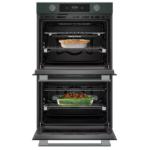 Asimismo, este horno doble incluye funciones especiales como hornear al vapor, que agrega humedad para panes y tartas más suaves, y el modo Pizza Fresca, que alcanza los 280 °C para lograr pizzas caseras crujientes y deliciosas. Además, ofrece la opción de asado lento sin precalentamiento, ideal para carnes tiernas o platos que requieren tiempo. Del mismo modo, las perillas retroiluminadas facilitan iniciar rápidamente la cocción a la temperatura deseada, ahorrando tiempo y esfuerzo en cada preparación.