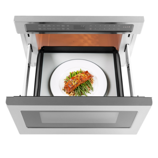 Su diseño combina estilo y funcionalidad. Por ejemplo, tiene acabado en acero inoxidable y puerta pull-out con manija a juego. Asimismo, sus dimensiones permiten una instalación empotrada, logrando un aspecto moderno y ordenado. Además, su capacidad de 1.2 pies cúbicos es suficiente para comidas rápidas y bebidas calientes.