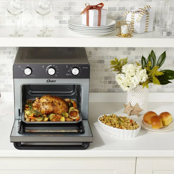 Preparar comidas deliciosas en casa nunca había sido tan fácil gracias al Horno con Freidora de Aire Oster de 22 litros, modelo TSSTTVMAF1NS. Además, este horno combina varias funciones en un solo equipo, lo que permite cocinar como en un restaurante sin complicaciones. Por otra parte, su interior antiadherente facilita la limpieza y, por lo tanto, ahorra tiempo después de cocinar.
