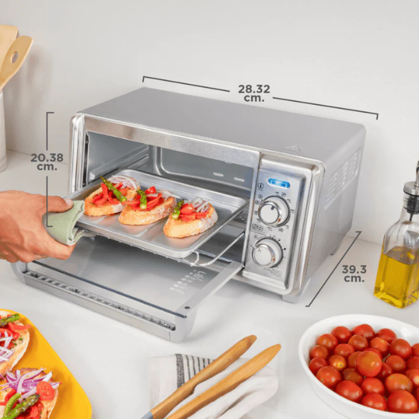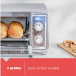 Finalmente, su temporizador de 30 minutos con apagado automático brinda mayor seguridad y control. También incluye accesorios útiles como bandejas y parrilla. Por lo tanto, este horno tostador es funcional, fácil de usar y perfecto para el día a día.