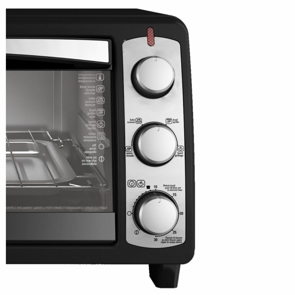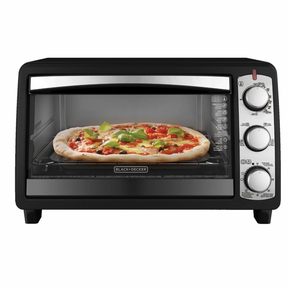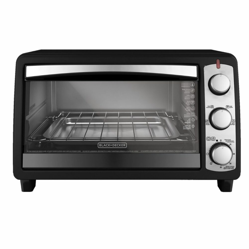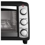 El horno de seis rebanadas de pan Black+Decker tiene el interior diseñado para el enfoque hacia la comida rápida e incluso cocinar. Las funciones de cocción son hornear, asar, tostar y mantener caliente. Tiene una capacidad para una pizza de hasta 9″ o seis rebanadas de pan.