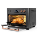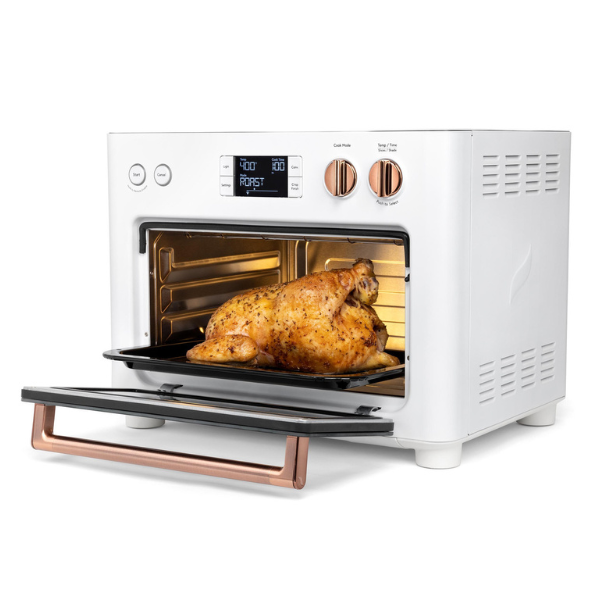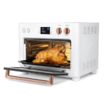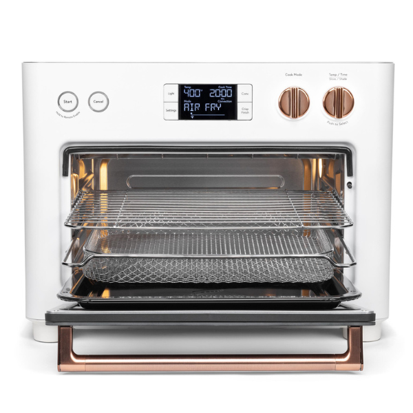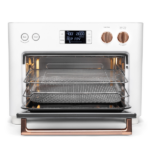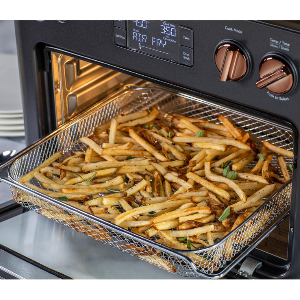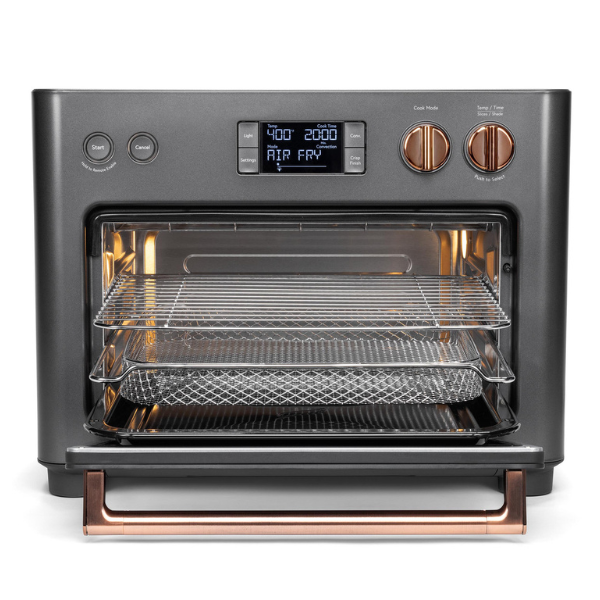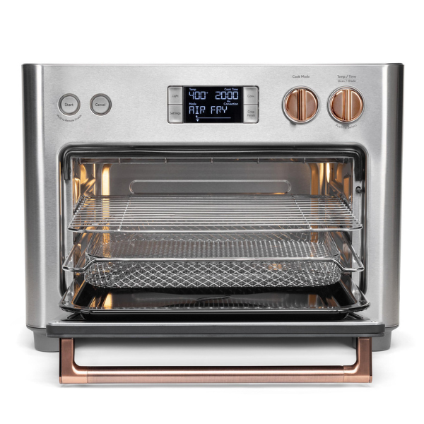 El horno tostador CAFÉ Couture con freidora de aire es un electrodoméstico moderno y práctico que combina estilo y funcionalidad en tu cocina. En primer lugar, su diseño con detalles en cobre cepillado lo convierte en una pieza elegante que embellece cualquier encimera.