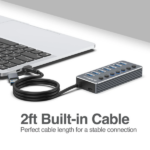Asimismo, con este hub puedes disfrutar de transferencias de datos rápidas de hasta 5 Gbps. De esta manera, es ideal para conectar memorias USB, discos duros, ratones, teclados y otros accesorios. Igualmente, incluye un puerto de alimentación externa Tipo-C, que permite usar dispositivos con mayor consumo de energía sin problemas. Además, su diseño en aluminio ligero y resistente garantiza durabilidad y un buen acabado.