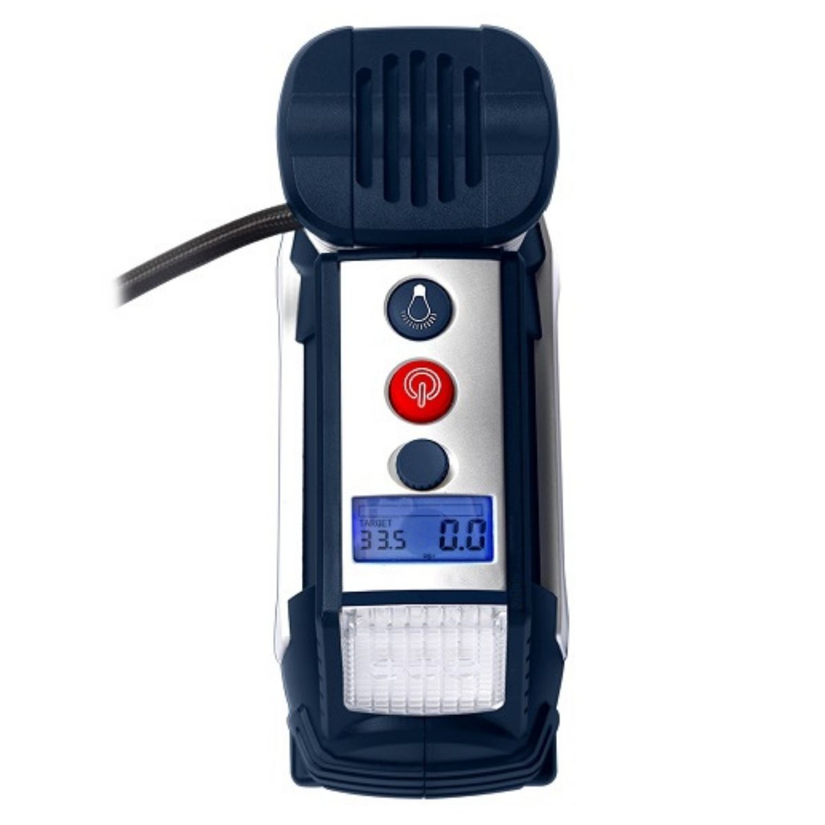 El inflador digital de 12 voltios eliminá la preocupación de cualquier emergencia en la carretera. Simplemente programe el nivel de PSI deseado para su neumático, tractor, motocicleta, ATV, automóvil, camión, SUV o RV, conecte la válvula de manguera de aire roscada a prueba de fugas y encienda esta pequeña central eléctrica. La luz LED proporciona la iluminación adecuada para el inflado nocturno. El ventilador de enfriamiento se activa según sea necesario para evitar el sobrecalentamiento y permite 30 minutos de uso continuo. Una vez que se alcanza el nivel de presión deseado, el motor se apaga automáticamente. ¡Solo desconecta y listo!
