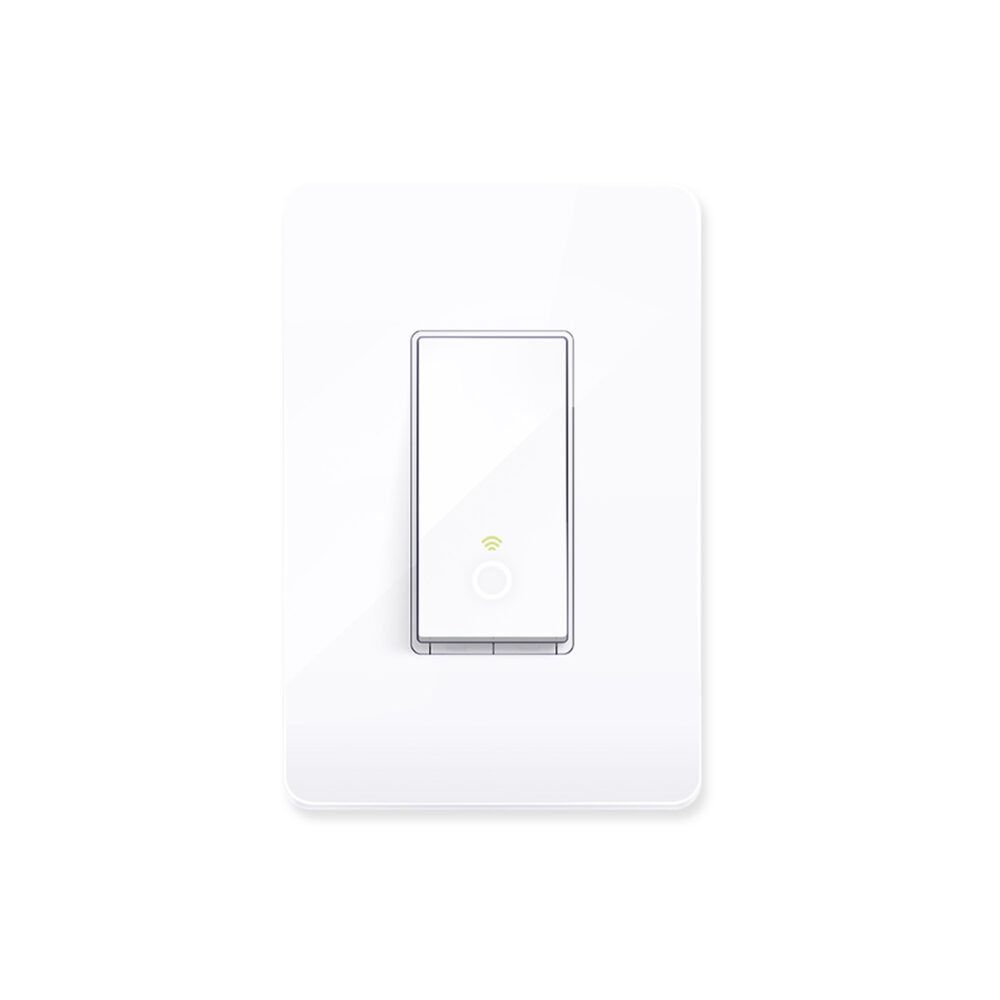 Se trata de un interruptor hecho con plástico resistente de un solo polo, para instalar en paredes o muros, que se acciona solo con presionar un botón. También puede sincronizarse con cualquier dispositivo móvil gracias a la aplicación Kasa.