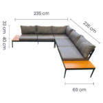 - Configuración del sofá: 205 cm lado corto.